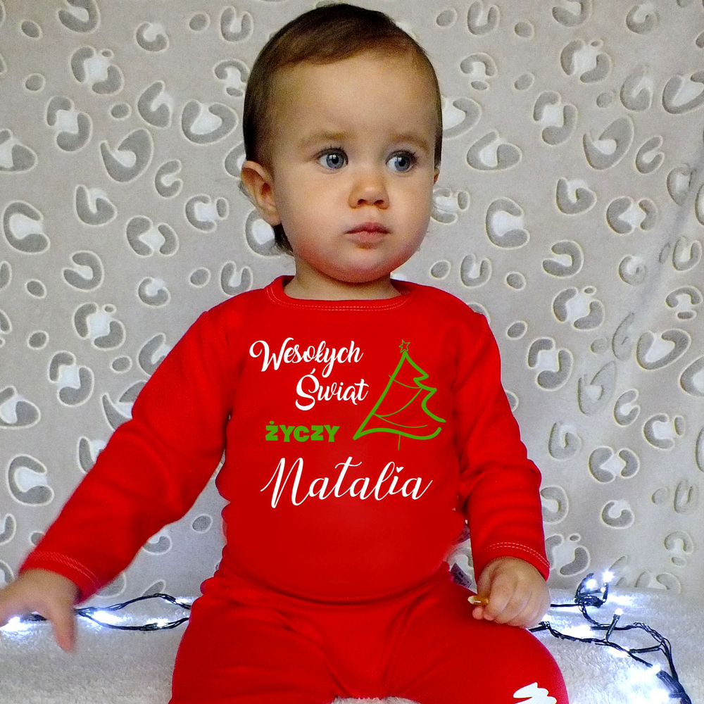 Body długi rękaw "Wesołych Świąt życzy + imię" Moocha czerwony
