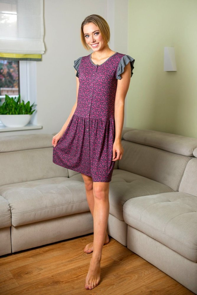 318 Koszula Nocna, ciążowa, do karmienia MIRACLE - czarne grochy