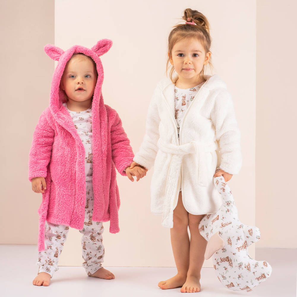 Dziecięcy szlafrok wykonany z mięciutkiej dzianiny. Posiada wygodny kaptur, który otuli głowę Twojego dziecka. Wiązany w pasie. Zagwarantuje ciepło i zapobiegnie przed wychłodzeniem po kąpieli.