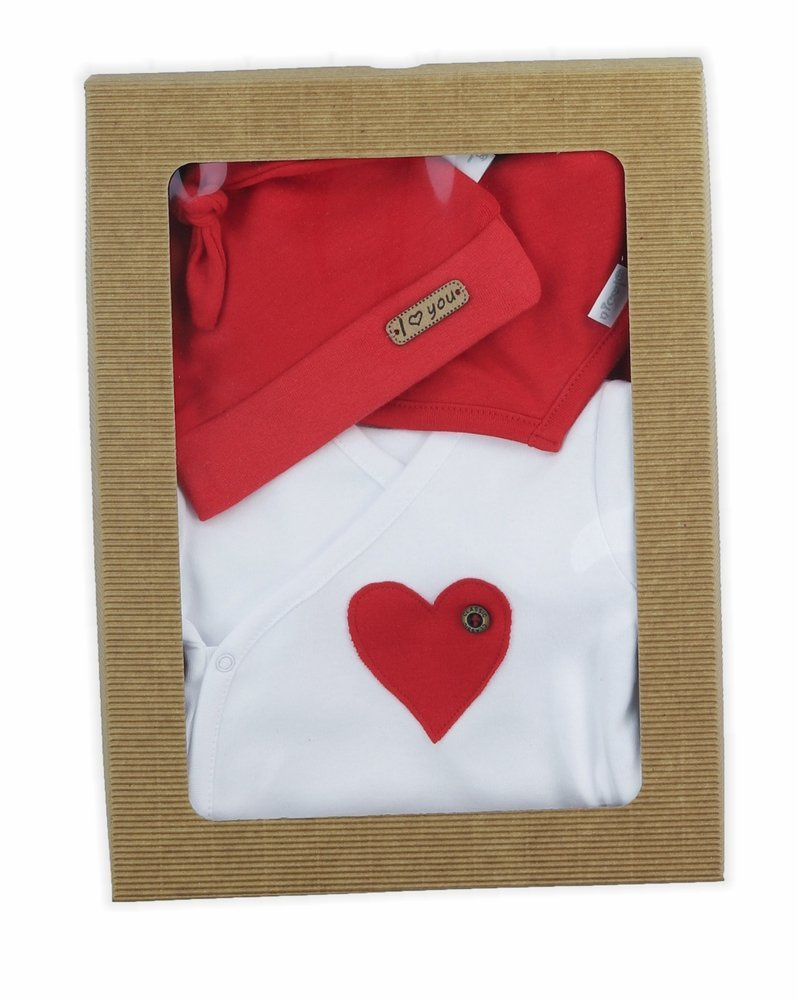 163200 Komplet czapka, body, apaszka i półśpioch "Walentynki" Nicol