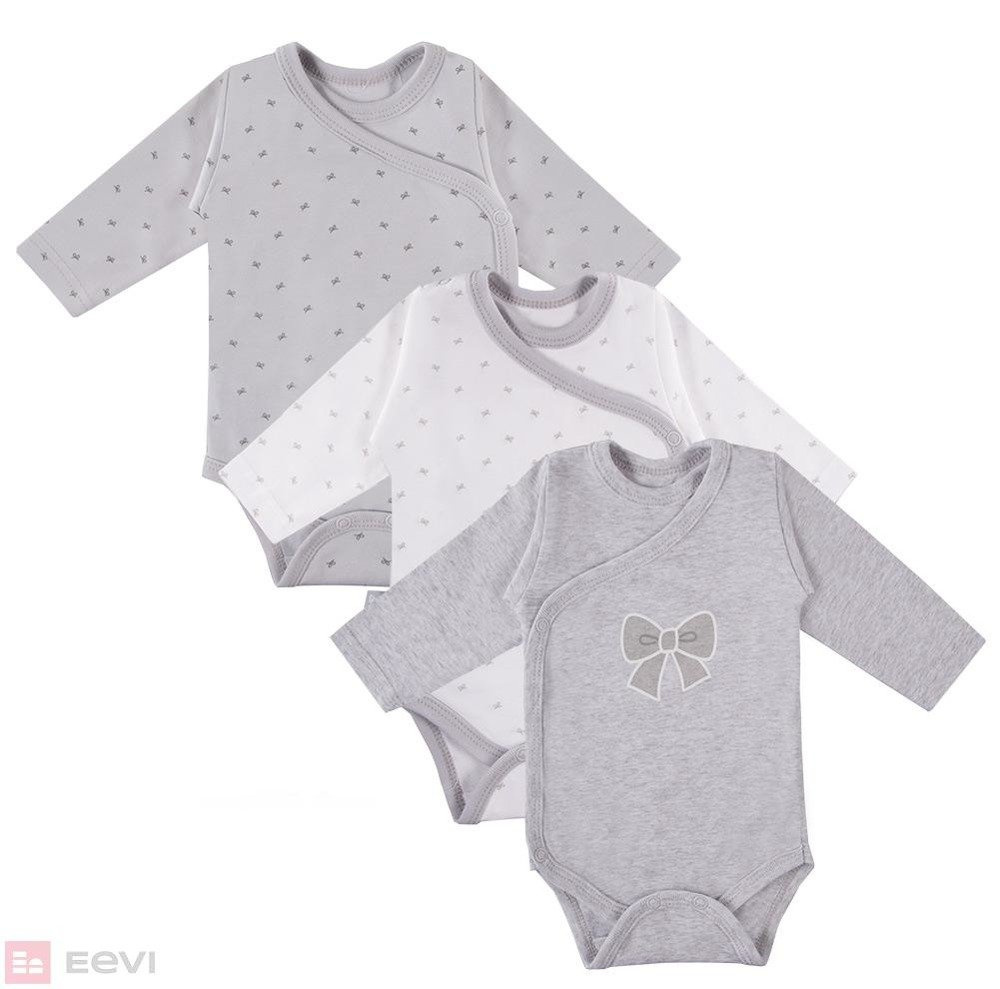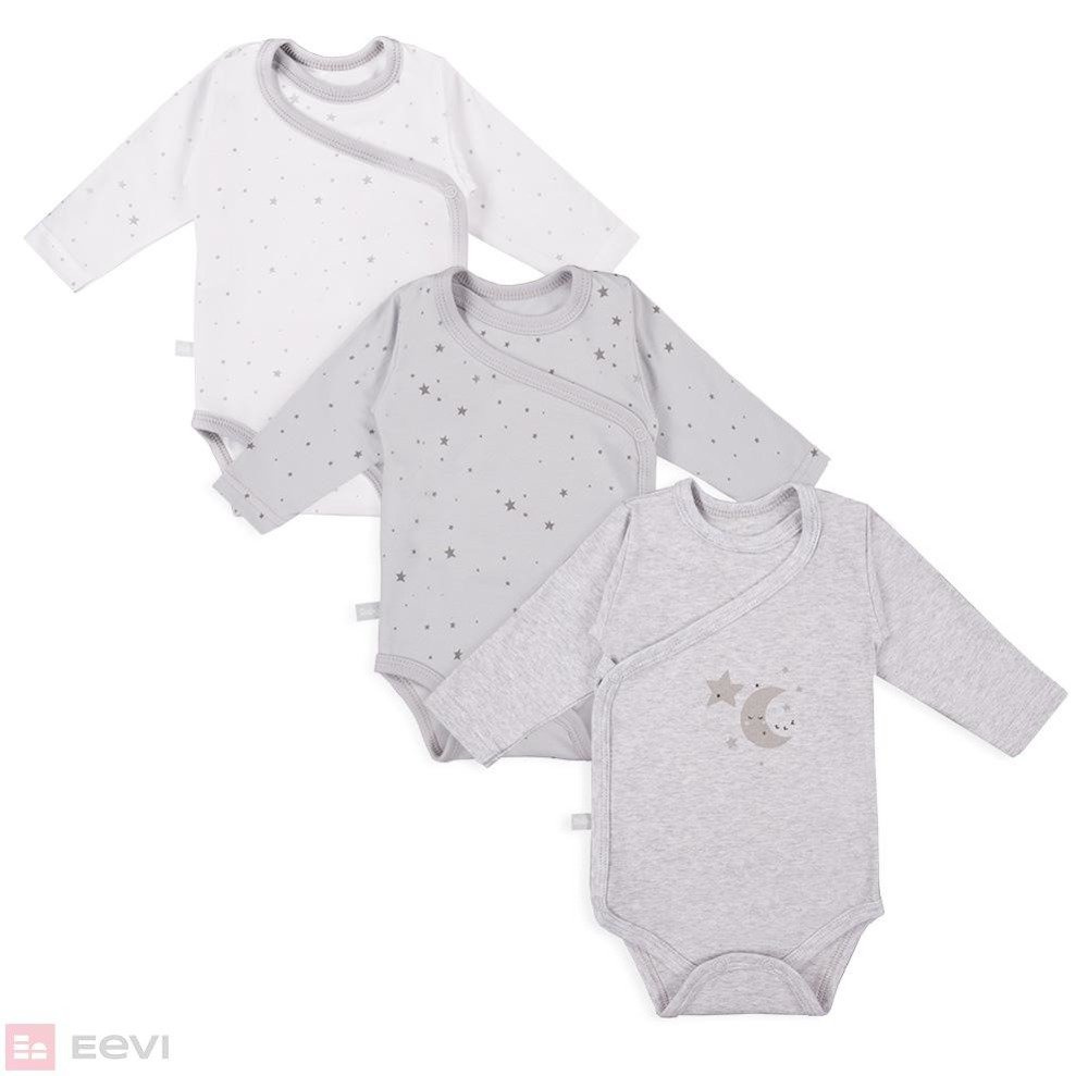 Body 3-pak zakładane z długim rękawem z kolekcji "Tiny" uszyte z miękkiej i przyjemnej w dotyku dzianiny drukowanej. Krój umożliwia całkowite rozpięcie, przez co ubranko jest funkcjonalne i wygodne. Wykończone miękką lamówką. Napy użyte w naszych wyrobach nie zawierają niklu.