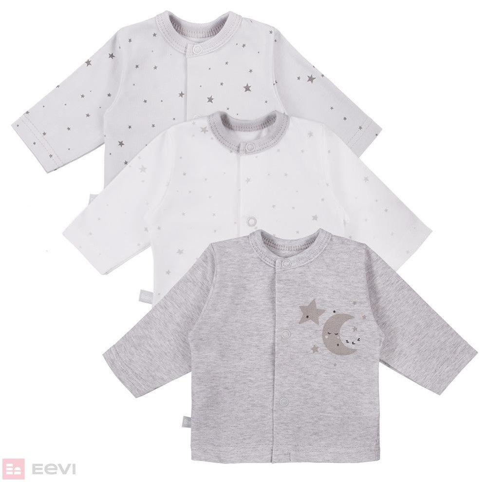 Kaftan 3-pak z kolekcji "TINY" uszyty z miękkiej i przyjemnej w dotyku dzianiny drukowanej. Krój umożliwia całkowite rozpięcie, przez co ubranko jest funkcjonalne i wygodne. Wykończony miękką lamówką. Napy użyte w naszych wyrobach nie zawierają niklu.