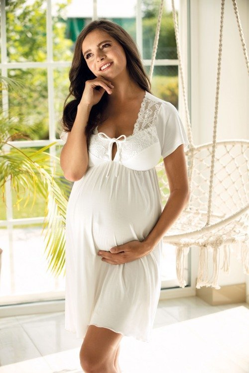 Wyjątkowo delikatna kobieca koszulka dedykowana przyszłym i obecnym mamom. Dekolt zdobi wytworna koronka, dodatkowym atutem jest wiązanie przy piersiach, które ułatwi karmienie maluszka. Miękka, elastyczna dzianina, bardzo przyjemna w dotyku. Kolor ecru i minimalizm w formie nadają jej szyku i glamourowego wyglądu. Każda mama może wyglądać dzięki niej elegancko i czuć się komfortowo.