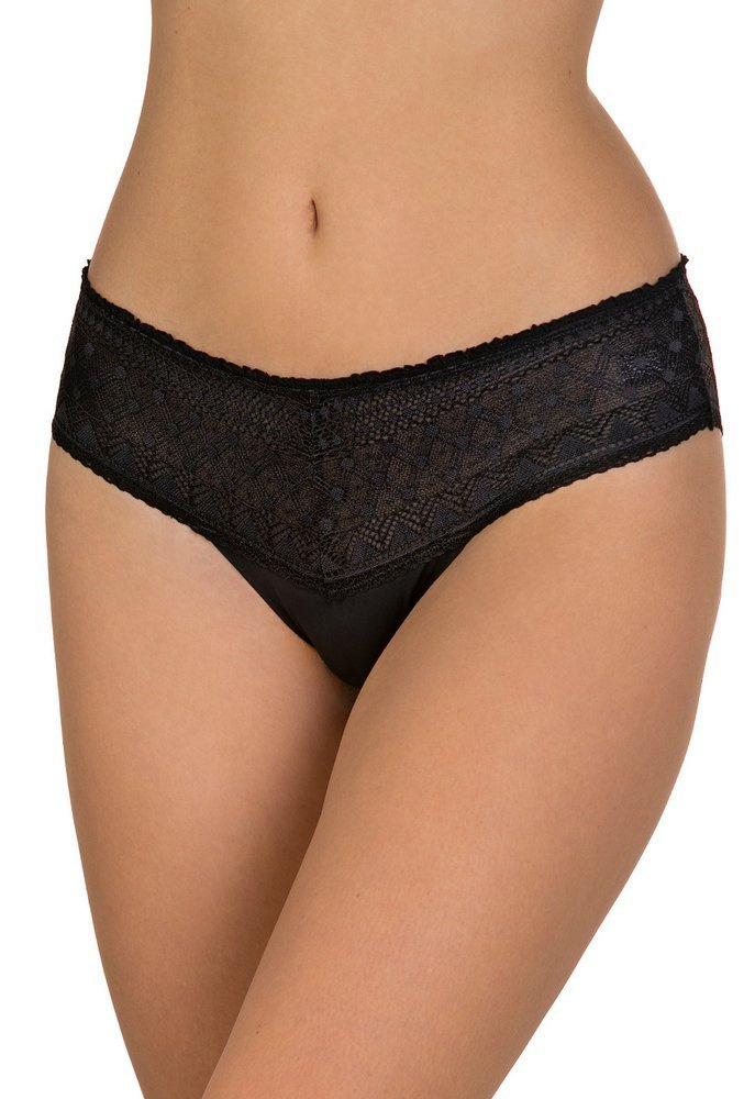 Efektowne figi damskie wykonane z ażurowej koronki oraz mikrofibry z ultracienkim wykończeniem brzegów. Zostały wykonane w technologii laserowej. Posiadają wysoką linię talii.