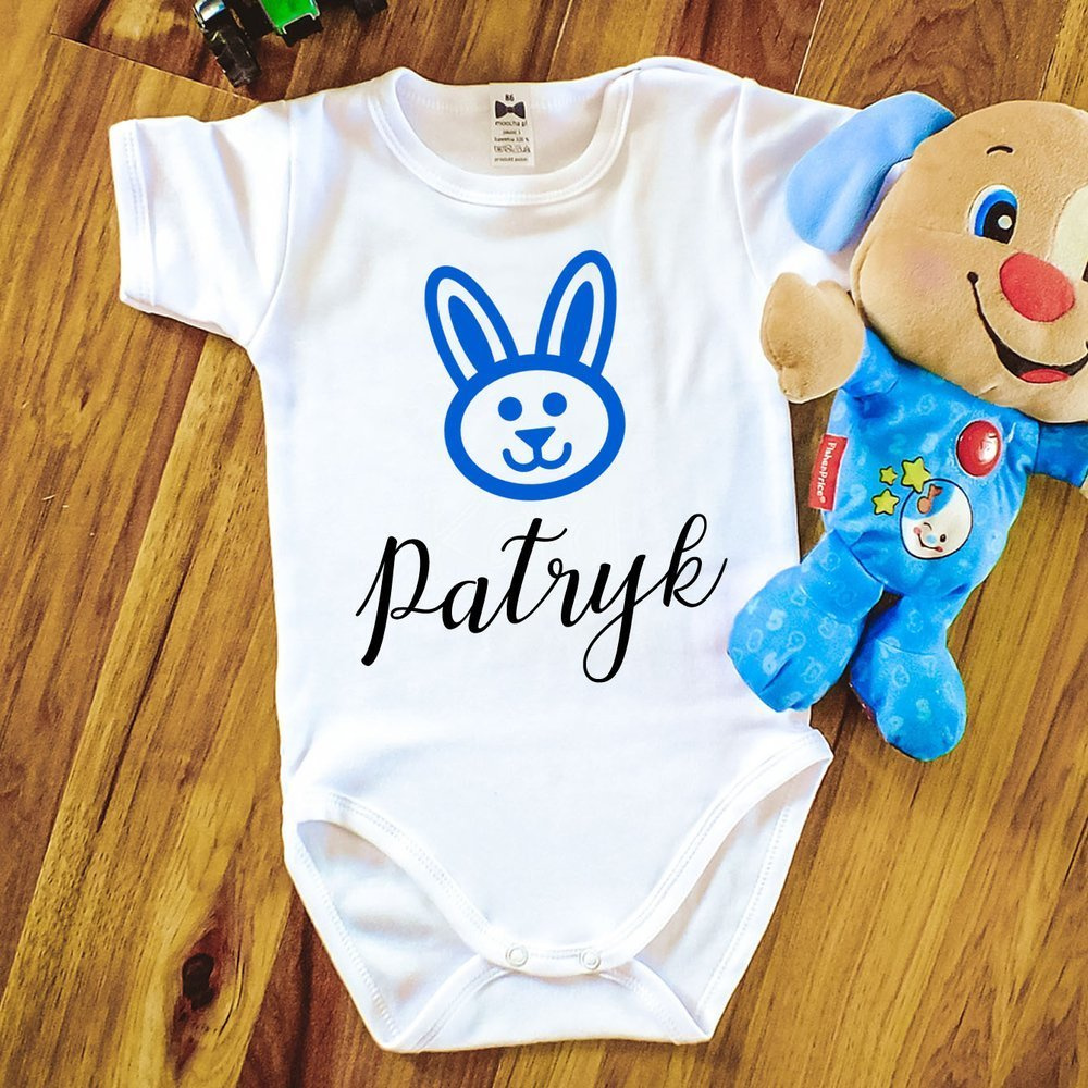 Body krótki rękaw "Wielkanoc z imieniem niebieskie" Moocha białe