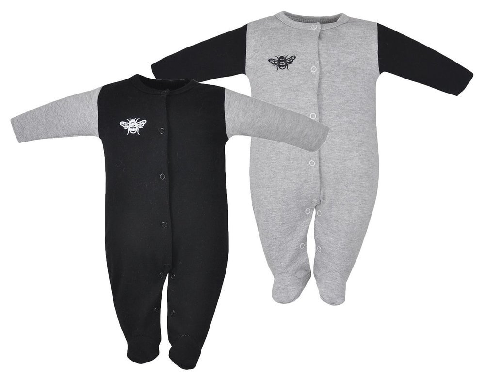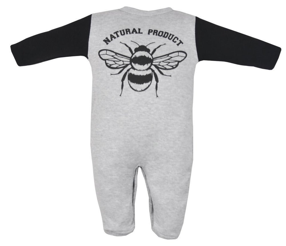 Pajacyk niemowlęcy z ozdobnym nadrukiem wykonany z 100 % bawełny.