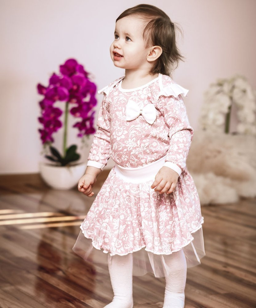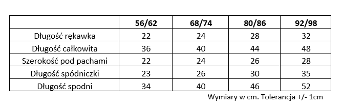 Spódniczka ma elastyczny ściągacz bez-uciskowy. Zestaw wykonany z najlepszej polskiej bawełny, która posiada wszystkie niezbędne certyfikaty. Ubranka zapinane na atestowane napy. Bodziaki mają przyklejane metki, które łatwo zdjąć i przez to nie drażnią dziecięcego ciałka. Ubranko jest funkcjonalne i wygodne.