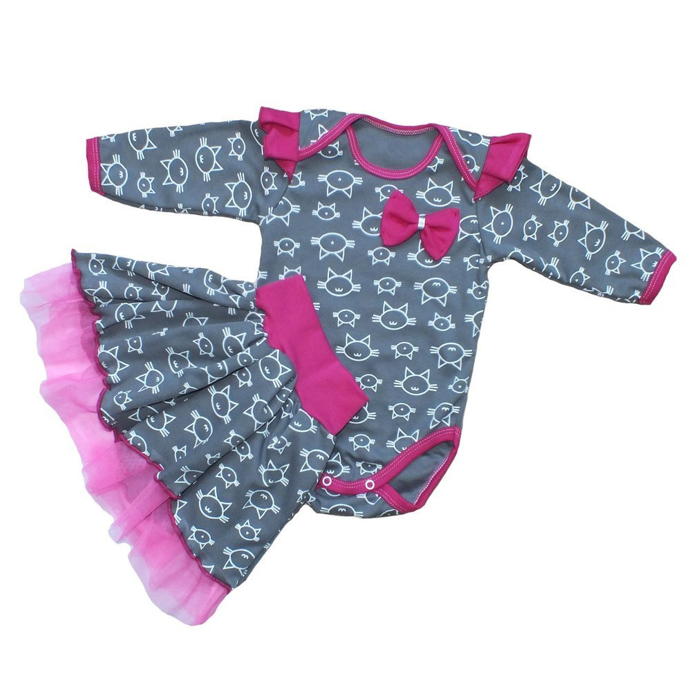 Komplet składa się body z długim rękawkiem z falbankami oraz spódniczki tiulowej.