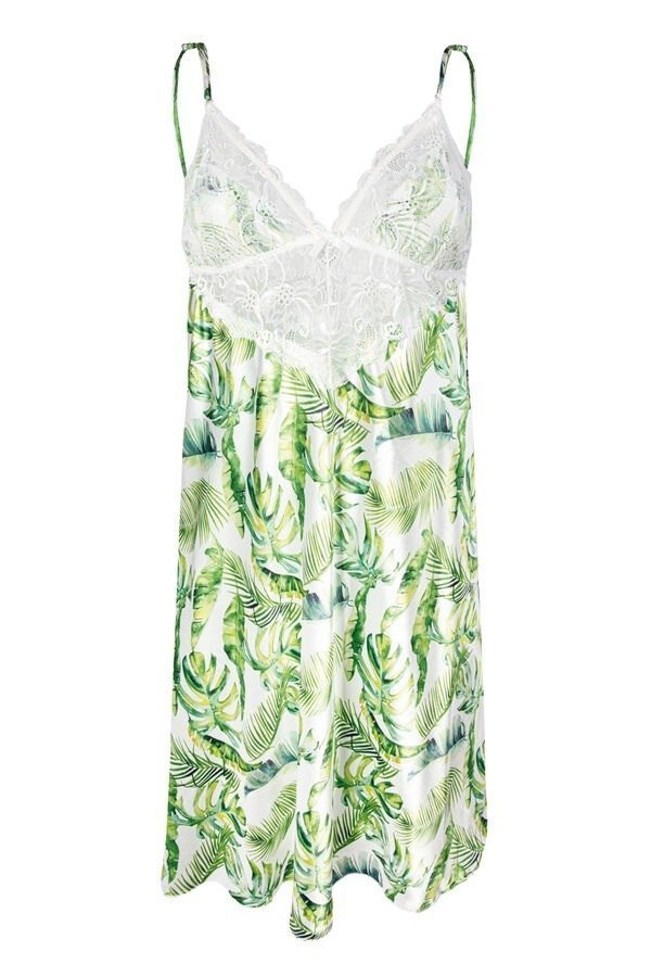 Zwiewny dotyk satyny utuli Cię do snu. Haleczka wykonana z drukowanej satyny natomiast góra koszulki wykończona efektowną koronką .