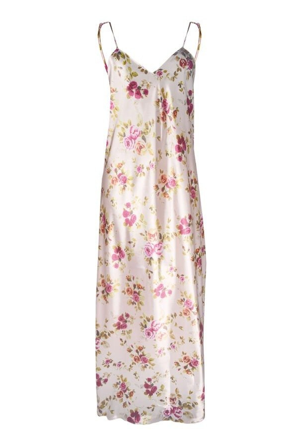 Flowers Halka satynowa długa koszulka damska DKaren - DK-HI4 ecru