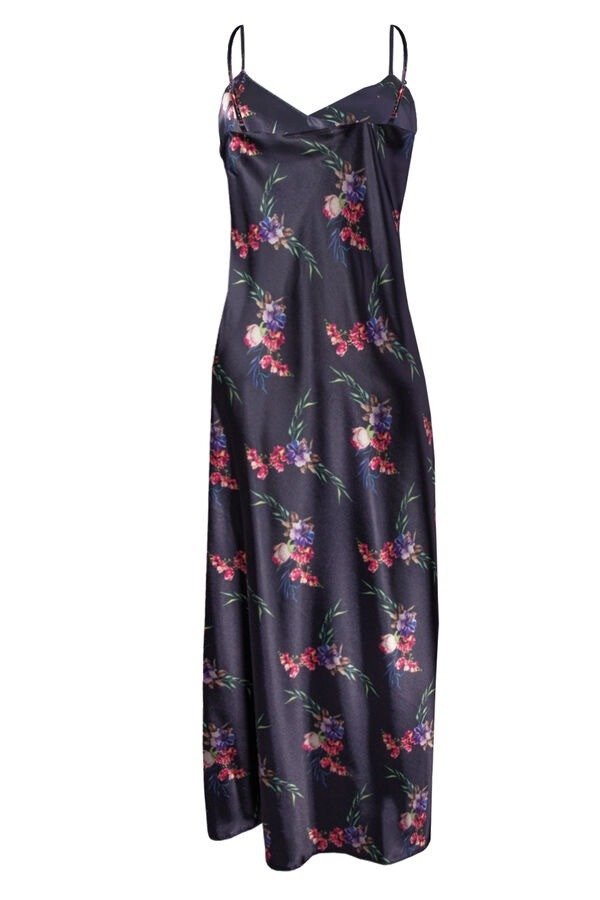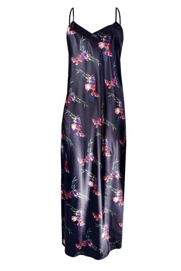 Flowers Halka satynowa długa koszulka damska DKaren - DK-HI 9 granatowy
