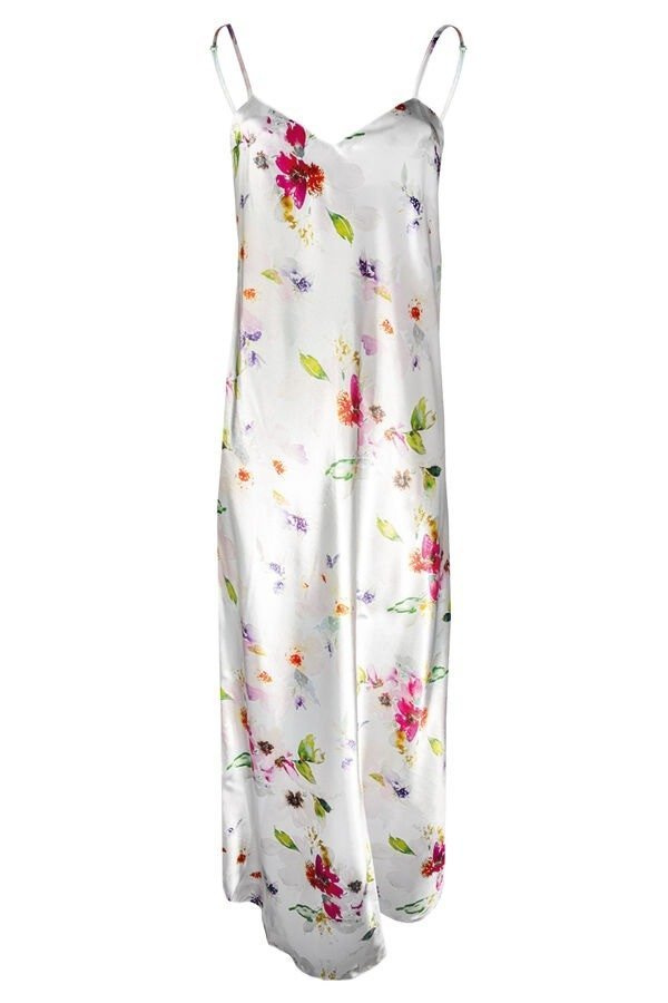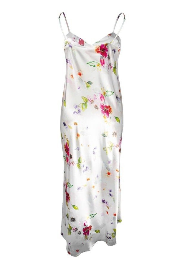 Flowers Halka satynowa długa koszulka damska DKaren - DK-HI 10 biały