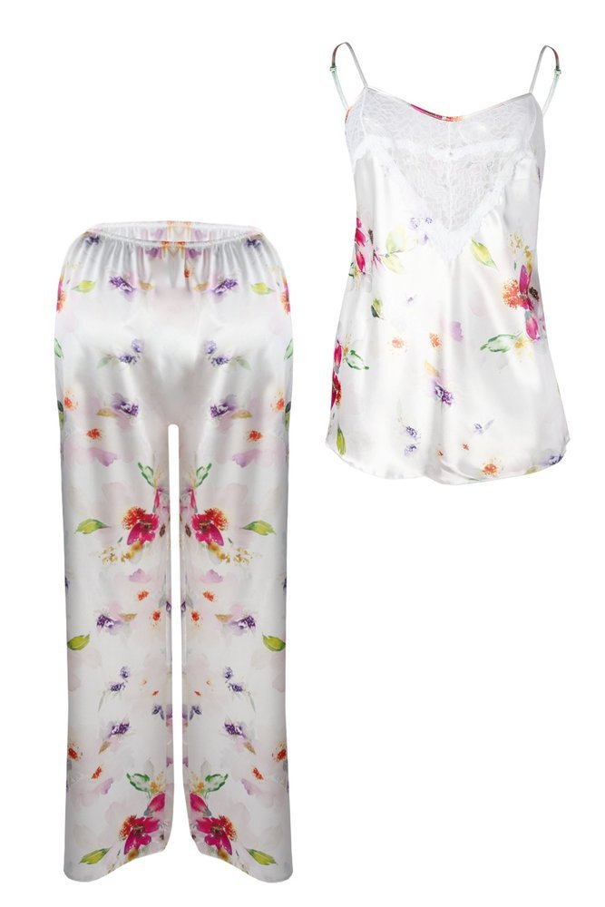 Satynowy komplet FLOWERS składający się z koszulki oraz długich spodni.