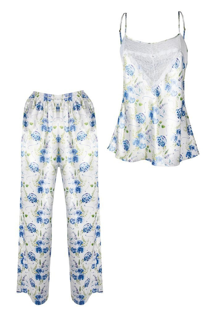 Satynowy komplet FLOWERS składający się z koszulki oraz długich spodni.