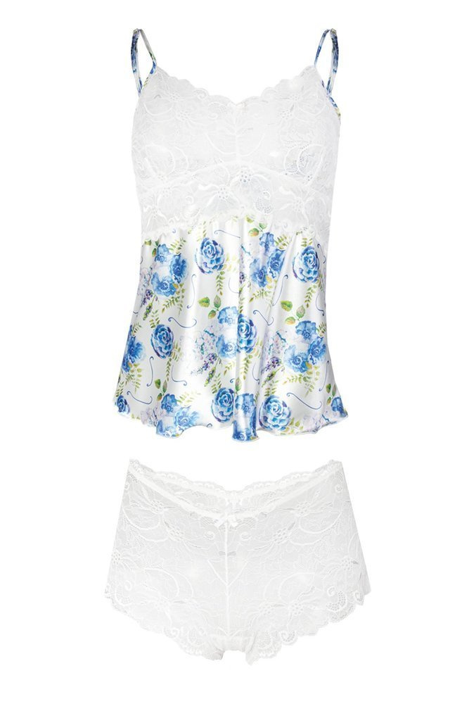 Flowers Komplet piżama damska DKaren DK-KA 010 biały
