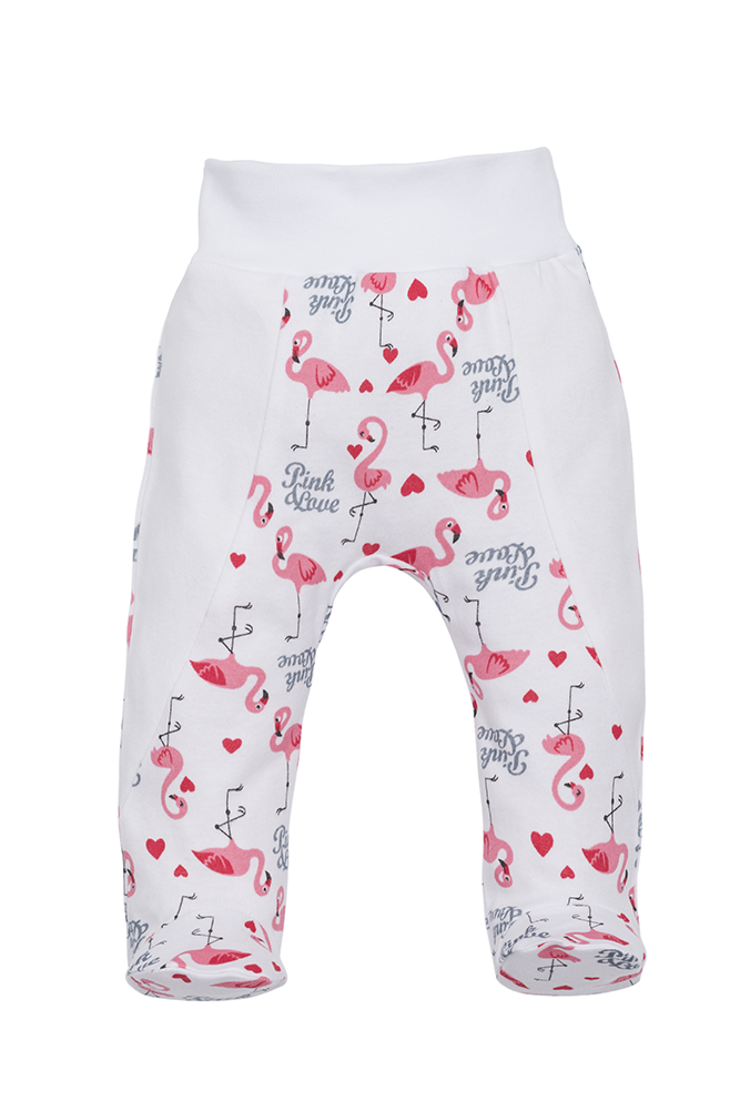 Półśpiochy niemowlęce w kolorze białym. Uszyte z najlepszej jakości bawełny. Wykończone szerokim pasem z bawełnianego ściągacza, który nie uciska brzuszka dziecka. Dopełnienie kolekcji FLAMING.