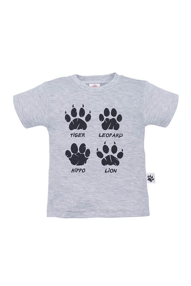 Wykonana ze 100% bawełny bluzka w kolorze białym i szarym. Ubranko przyozdobione napisem.  W zależności od pogody możemy go łączyć z krótkimi spodenkami lub z bluzą i długimi spodniami