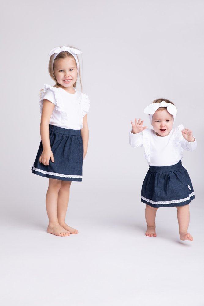 Wygodna,  spódniczka w białym kolorze. Ozdobiona wzorem w kwiaty.