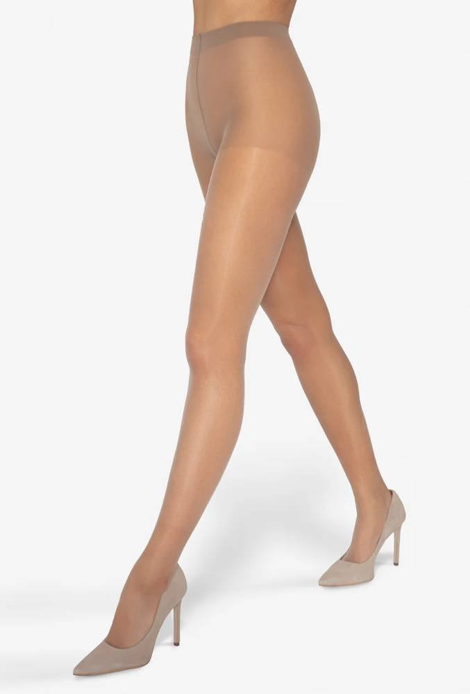 Cienkie rajstopy, optycznie maskujące drobne mankamenty skóry, takie jak pajączki i lekkie przebarwienia. Wykonane z przędzy poliamidowej z połyskiem - BRITE, która tworzy na rajstopie strukturę załamującą światło. Tak uzyskana powierzchnia daje efekt nałożenia lekkiego fluidu, dzięki czemu drobne mankamenty przestają być widoczne. Nogi zyskują naturalny koloryt, a charakterystyczny lekki połysk rajstop pięknie podkreśla kształt nóg, rozświetlając i wyszczuplając je optycznie.