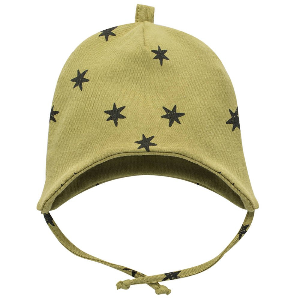 Bawełniana czapka niemowlęca w kolorze zielonym z nadrukiem.