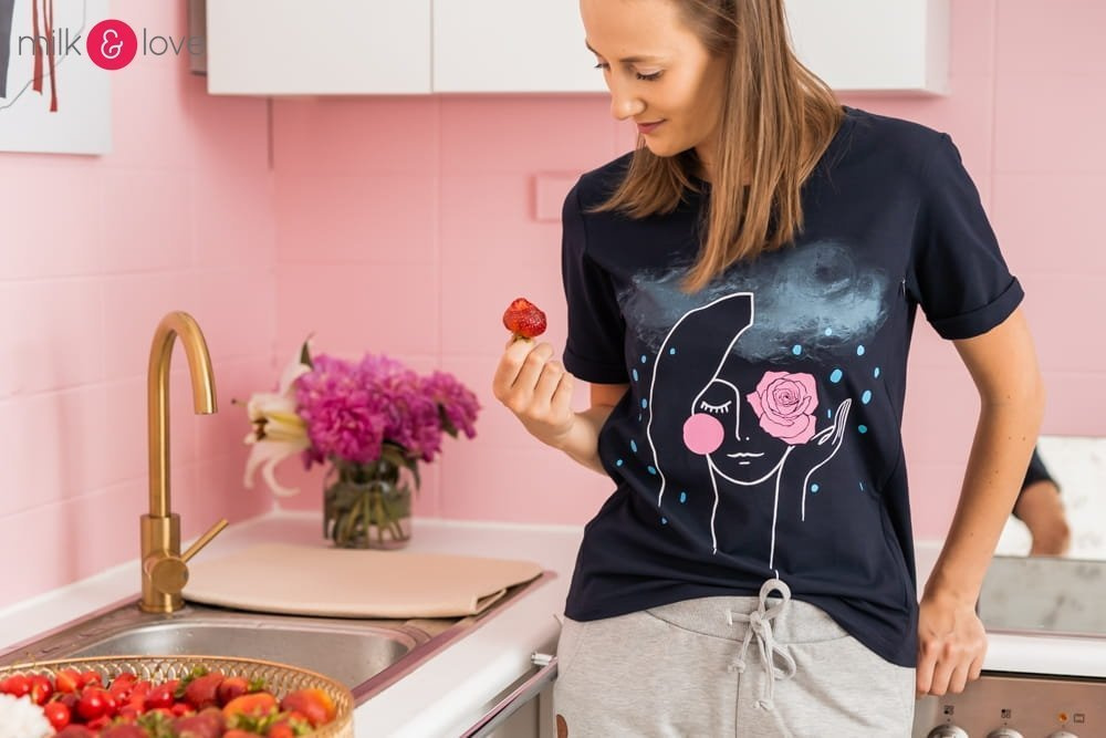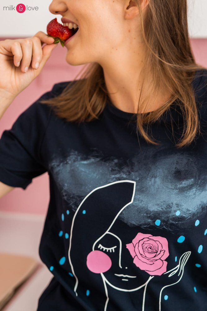 Bluzka do karmienia Boob Milk&Love ciemny granat z grafiką