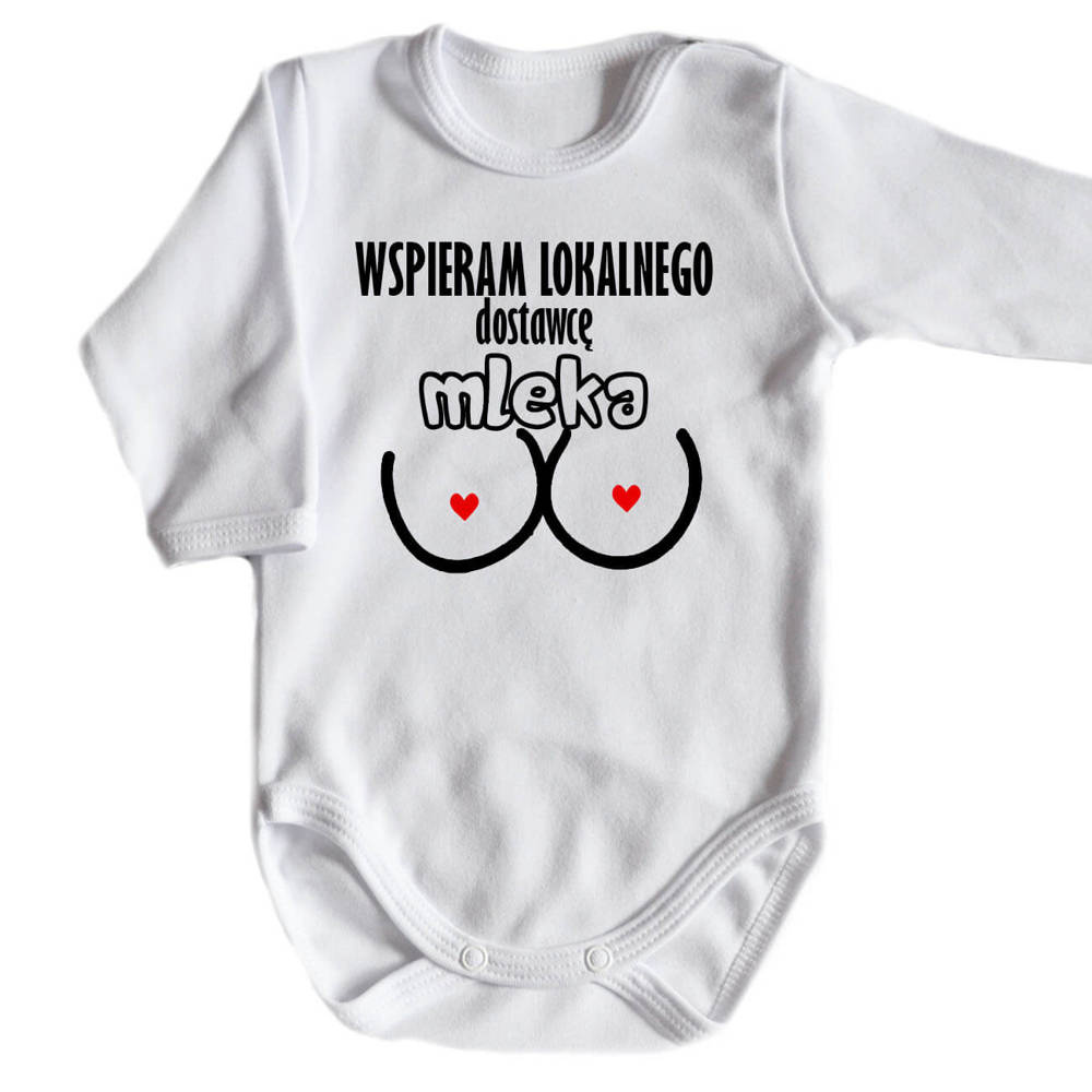 Body długi rękaw "Wspieram dostawce mleka" Moocha biały