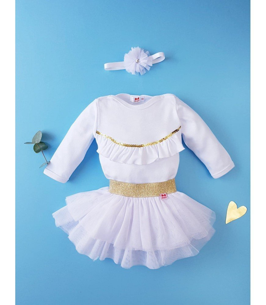 Mięciutka, opaska to efektowna ozdoba dziecięcej główki. Służyć może również jako alternatywa dla letniej czapeczki. Elementem rozpoznawalnym ubranka jest elegancka, a zarazem bardzo dziewczęca, kwiatek na środku. Doskonale komponuje się z pozostałymi ubrankami z kolekcji Santa.