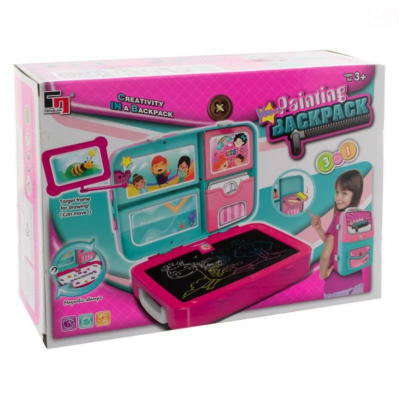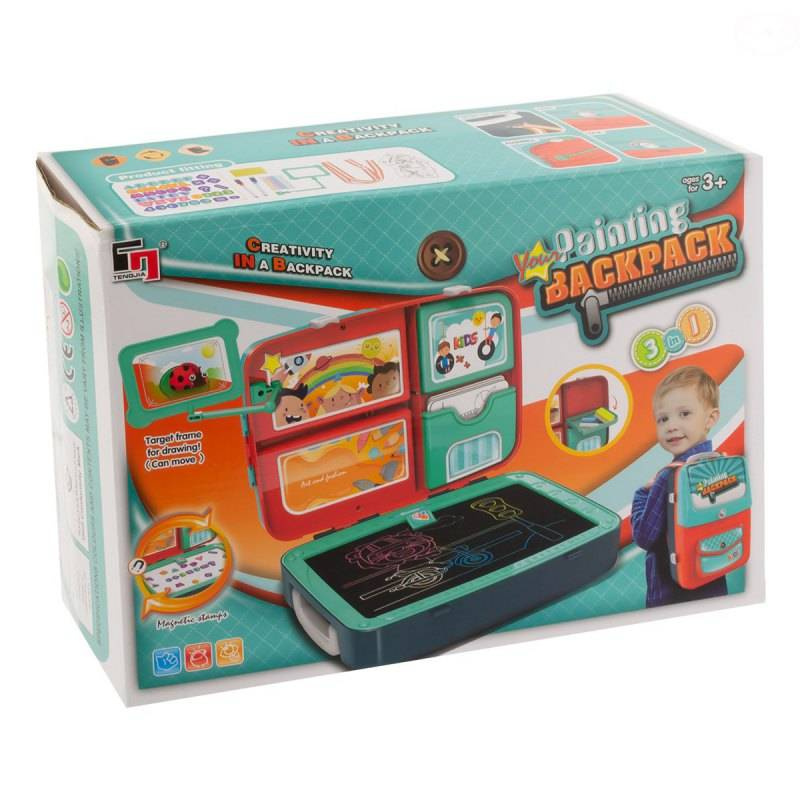 Plastikowy plecak/walizka z akcesoriami. W plecaku można przechowywać wszystkie elementy wyposażenia plecaka, a specjalne skrytki ułatwiała ich segregację. Zabawka wykonana jest z wysokiej jakości plastiku.