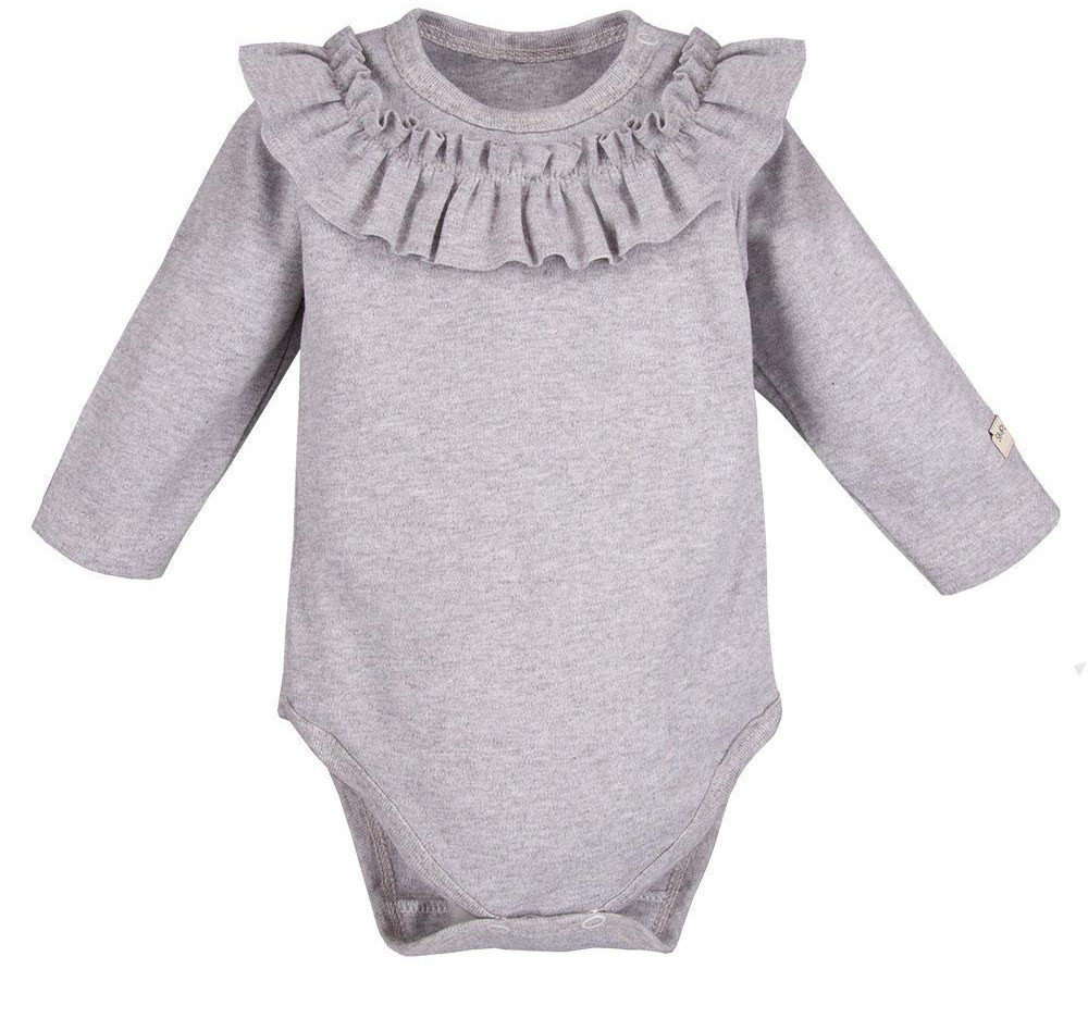 Body niemowlęce z uroczą falbanką, z długim rękawem.