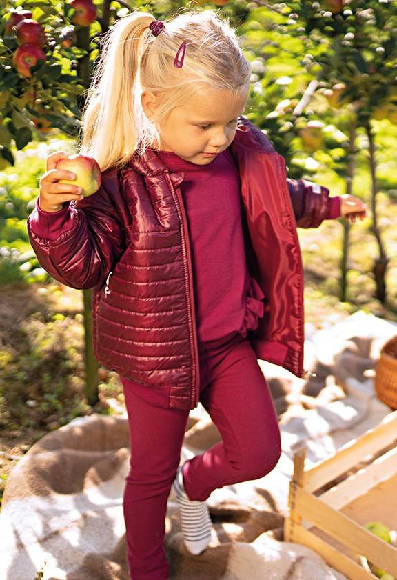 Wykonana z miękkiej i przyjemnej w dotyku tkaniny pikowanej. Posiada bawełnianą podszewkę. Krój umożliwia całkowite rozpięcie. Zamek przy szyjce został zabezpieczony przed przycięciem. Wykończona miękkimi lamówkami.