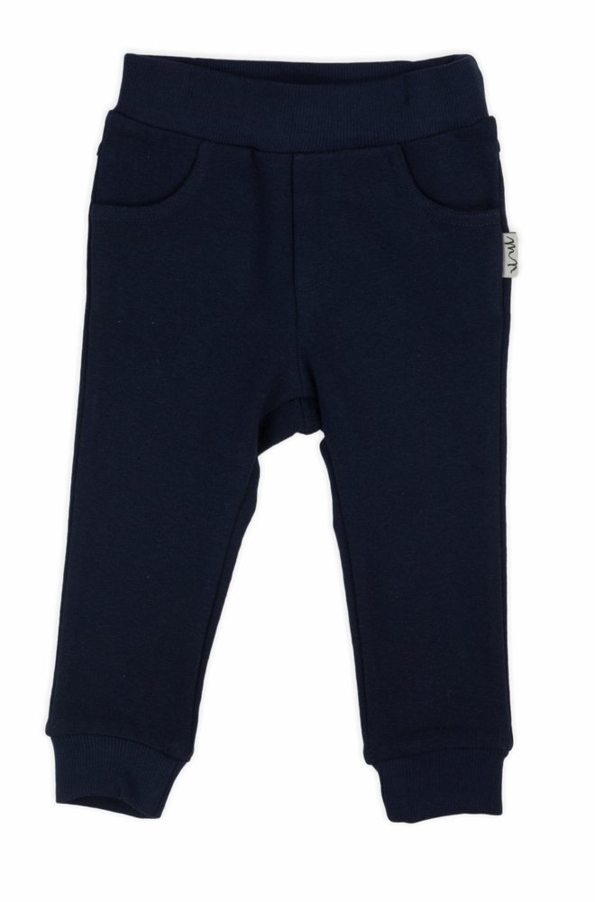 Modne spodnie z niebieskiej bawełny z kolekcji Mix,wykonane z bawełny 100%, która jest całkowicie bezpieczna dla skóry dziecka. Spodnie posiadają luźny krok, przez co ubranko jest wygodne i komfortowe dla dziecka. Ubranko zdobią kieszonki.
