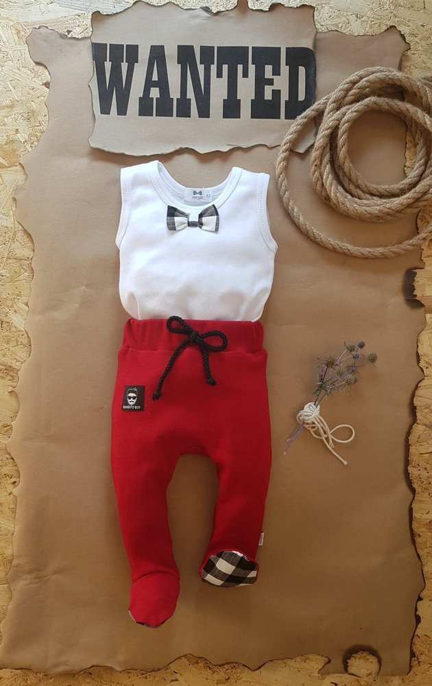 Klasyczne body z kolekcji Bandito boy, ozdobione muszką na przodzie. W modnym w tym sezonie kolorze - bieli. Body idealnie pasuje jako uzupełnienie, każdej stylizacji małego chłopca: spodni, spodenek lub bloomersów. Wykonane z mięciutkiej bawełny, idealne na upalne, letnie dni.