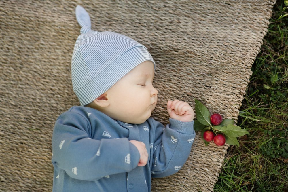 Bawełniana czapka wiązana dobrze przylega do główki, dzięki czemu zapewnia maluchowi ochronę uszu przed chłodem.