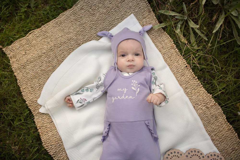 "My Garden" Pinokio Wiązana Czapka niemowlęca - fiolet