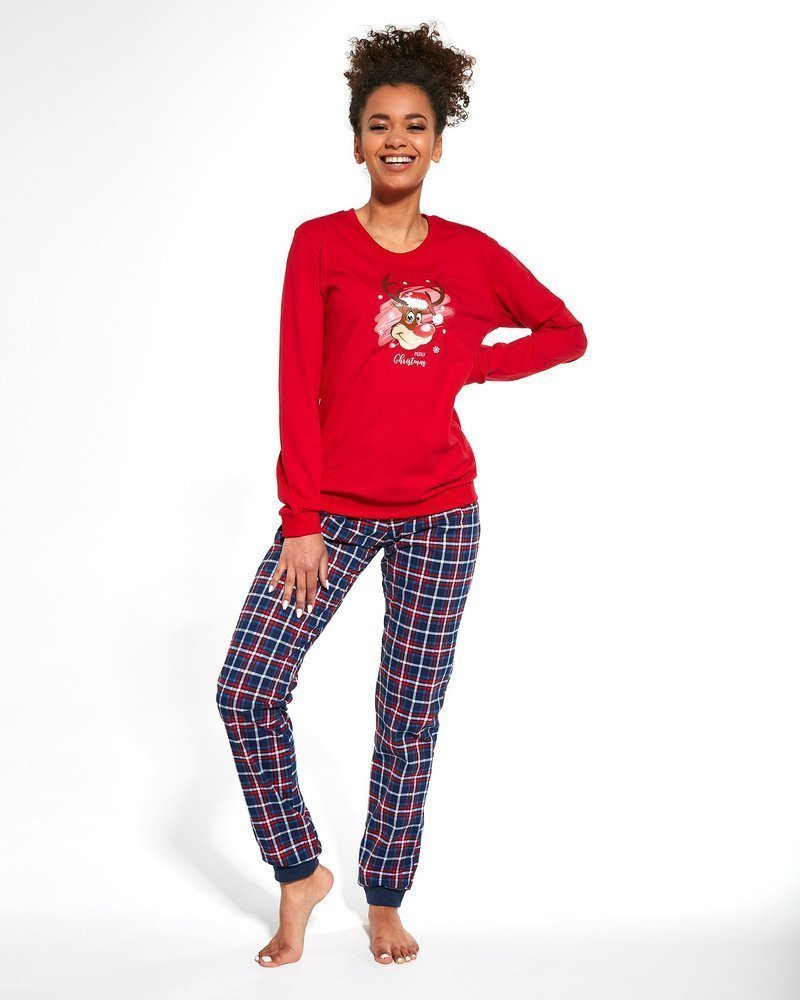 Wygodna piżama chłopięca z wysokiej jakości wyjątkowo miłej i miękkiej bawełny. Koszulka z długim rękawem, przód ozdobiony zabawnym kolorowym nadrukiem z reniferem. Spodnie długie, w kratkę. Dekolt, mankiety, dół koszulki i nogawki zakończone wygodnym ściągaczem. Pakowana w pudełko.