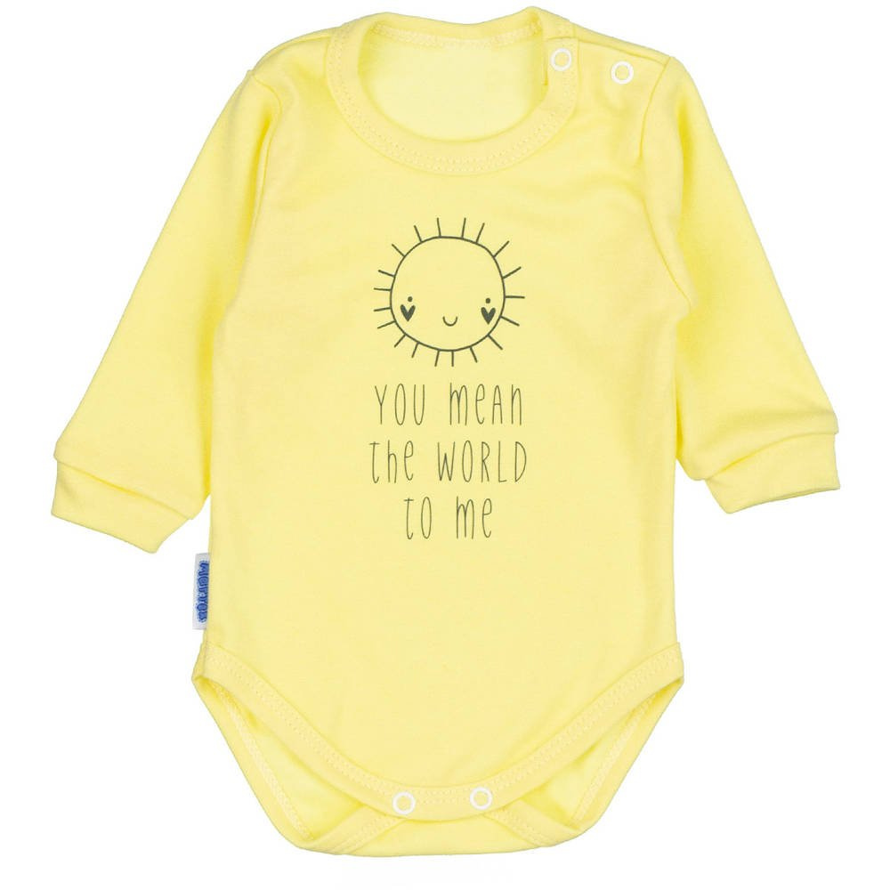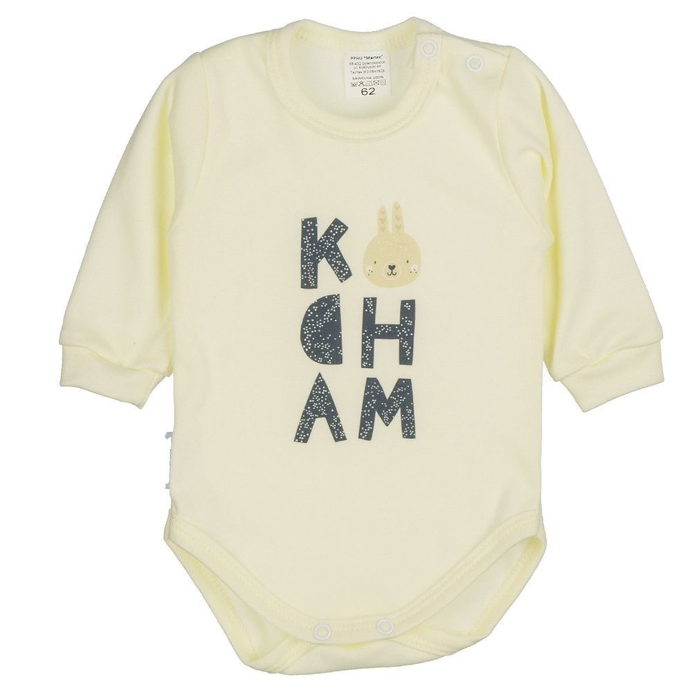 Body wykonane ze 100% bawełny. Ozdobione kolorową lamówką. Na ramionku i w kroczu zapinane na napki.