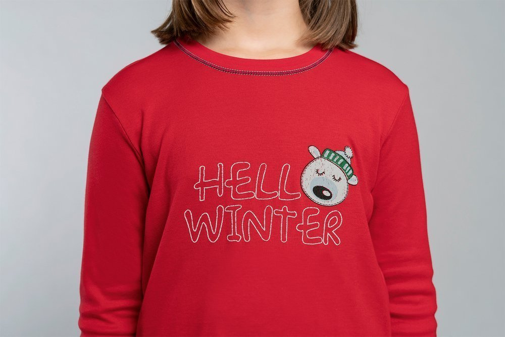 Piżama Czoka zdobiona świątecznym nadrukiem.