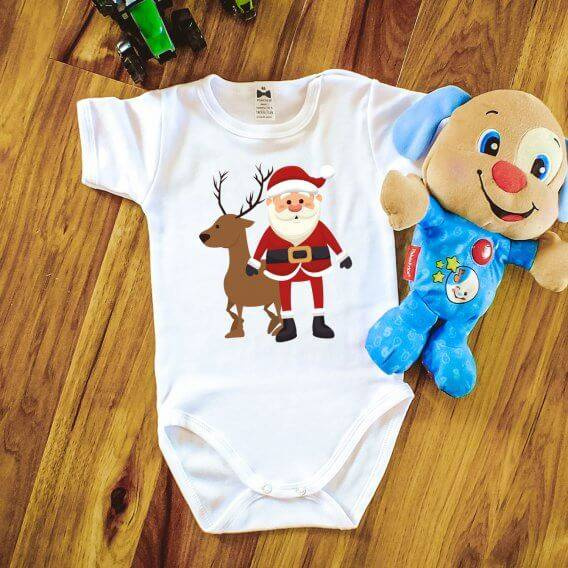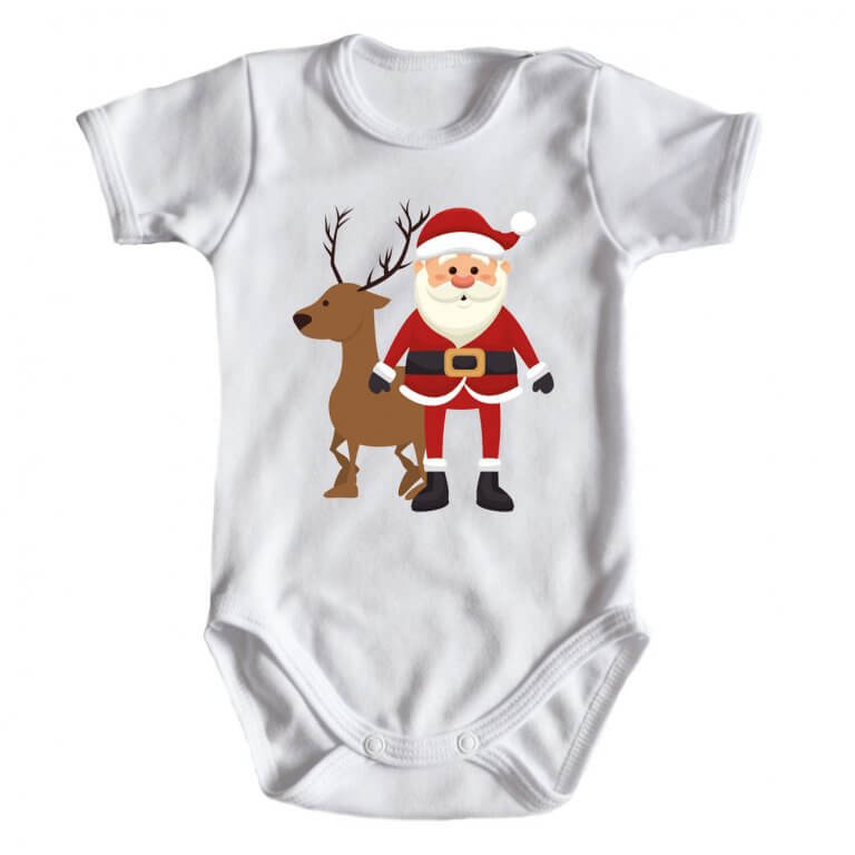 "Mikołaj z jelonkiem BOŻE NARODZENIE" Moocha body krótki rękaw biały