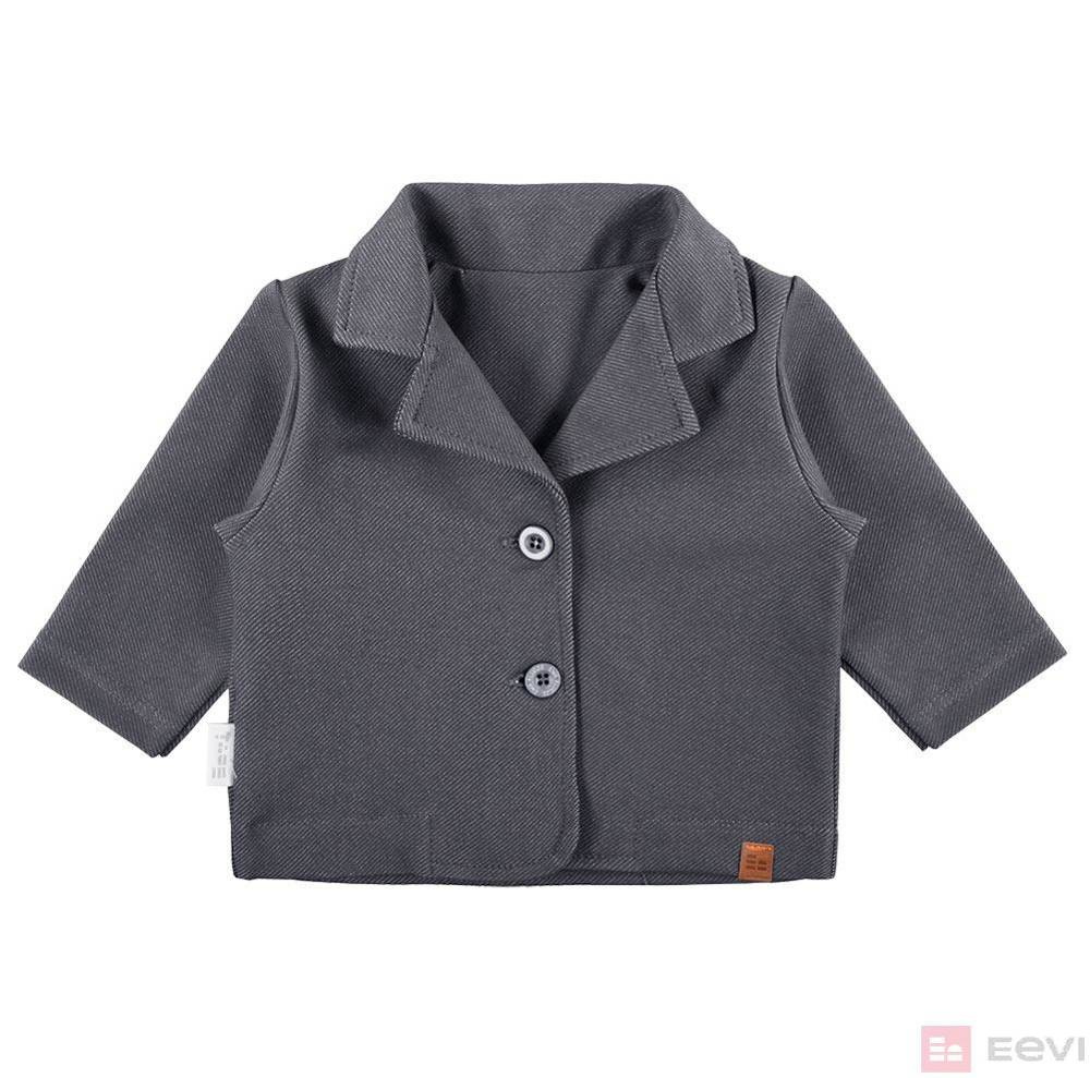 Marynarka chłopięca z kolekcji "Ceremony" uszyta z miękkiej i przyjemnej w dotyku granatowej diagonalnej dzianiny. Zapinana na guziki. Elementem ozdobnym jest niewielka naszywka wykonana z eko skórki.