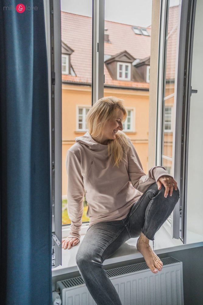 Bluza z wykorzystaniem dwukierunkowych zamków, które możesz otwierać do góry lub od dołu w ten sposób regulując wielkość otwarcia. Dzięki temu możesz karmić, gdzie chcesz swobodnie i bardzo dyskretnie!