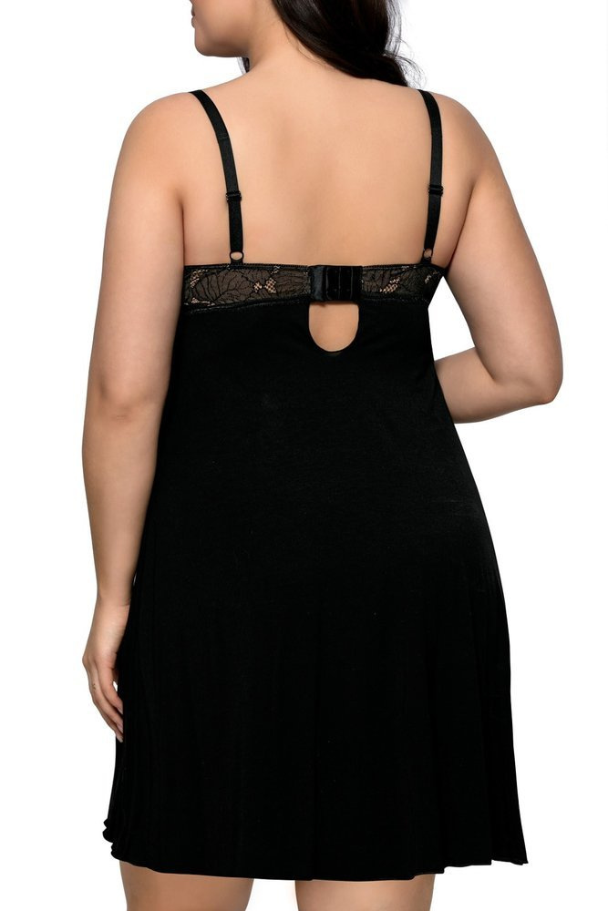 Zmysłowa koszulka damska wykonana z wysokiej jakości wiskozy. Biust ozdobiony efektowną koronką. Miseczki od wewnętrznej strony delikatnie usztywnione gąbeczką. Posiada regulowane ramiączka . Tył zapinany jak biustonosz. Długość przed kolano.
