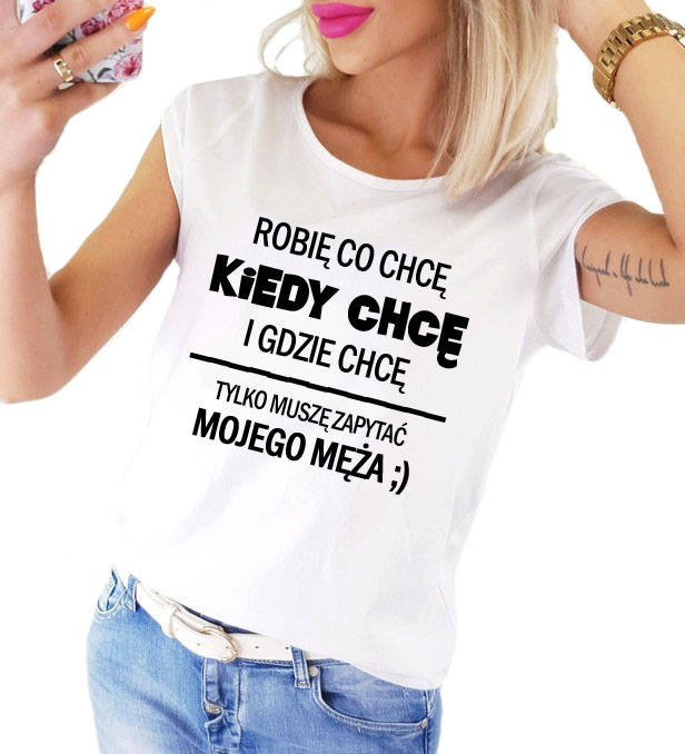 "Muszę zapytać męża" Moocha koszulka damska biały