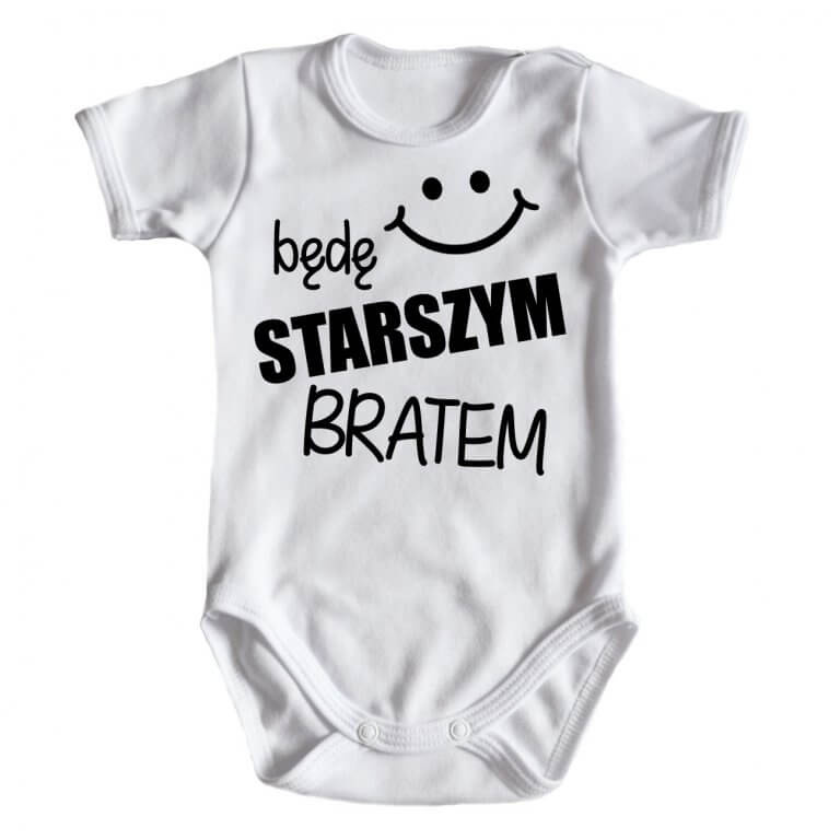 "Będę STARSZYM bratem v2" Moocha body krótki rękaw biały