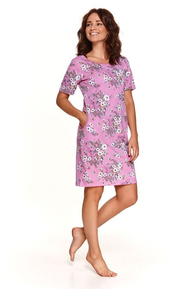 Koszula damska z wysokiej jakości bawełny w kwiaty, z krótkim rękawem.