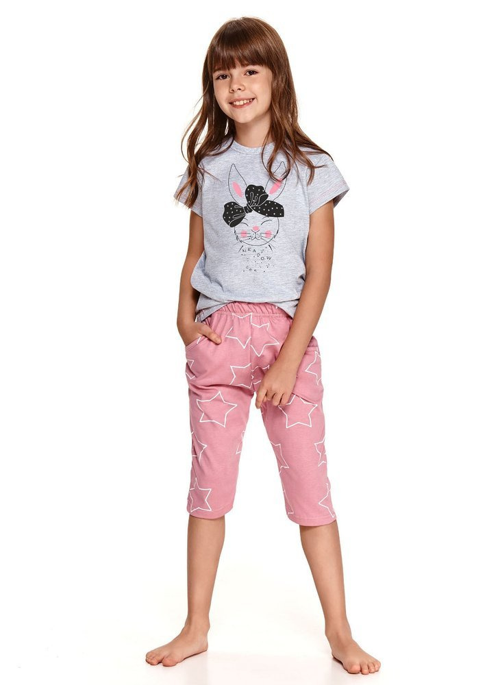 2213 Beki Piżama dla dziewczynki Taro 01 szary-różowy pudrowy
