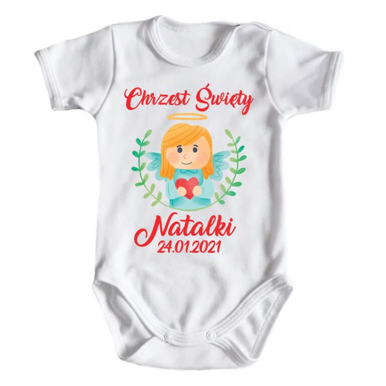 "Chrzest dla dziewczynki z imieniem" Moocha body krótki rękaw biały