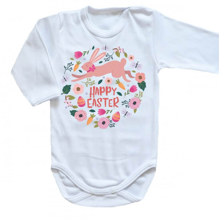 "HAPPY EASTER z zajączkiem" Moocha body długi rękaw biały