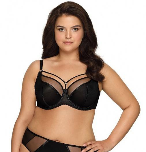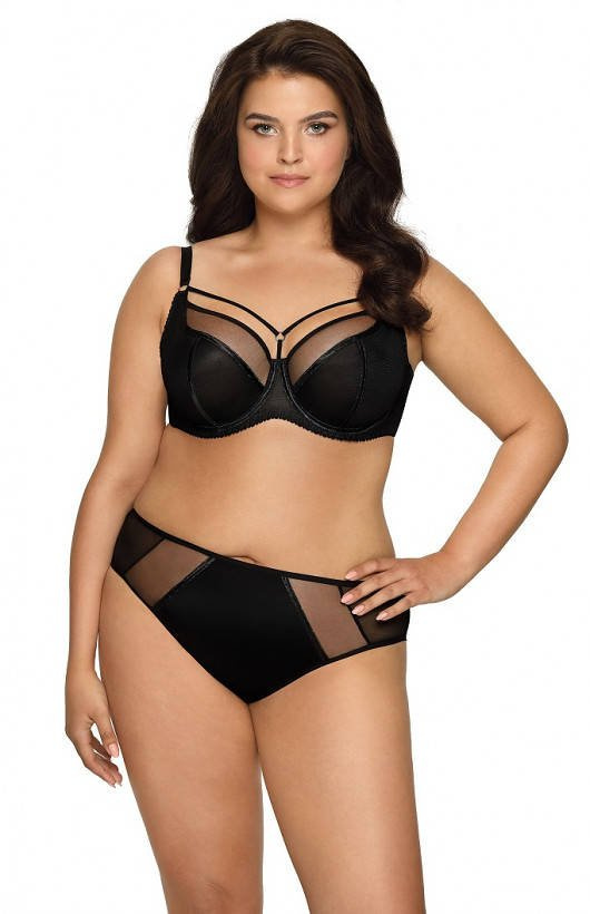 Górna część miski z delikatnej siateczki. Nad miseczkami ozdobne, elastyczne paseczki.