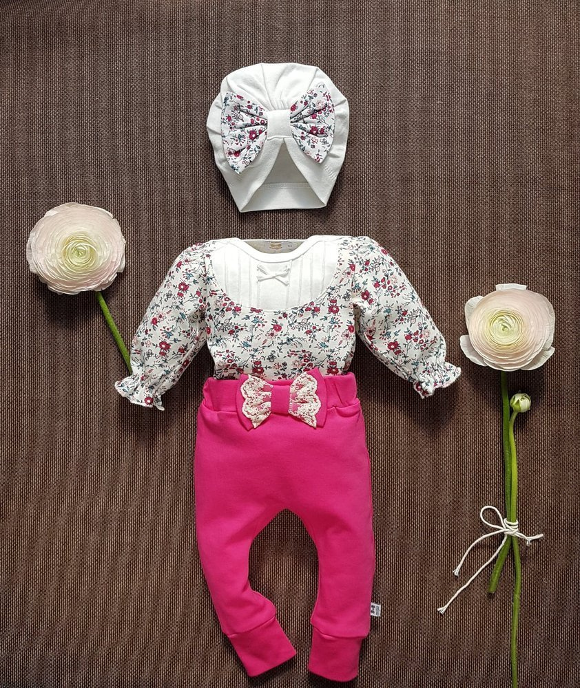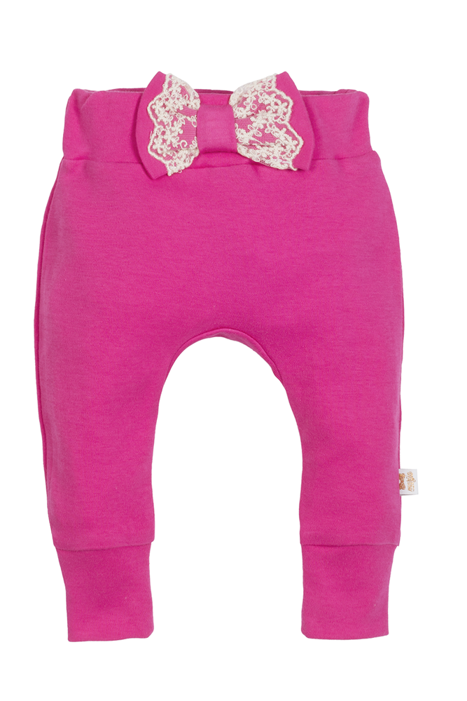 Spodenki w kolorze fuksji, zdobione dużą, koronkową kokardką. Tworzą idealne połączenie z body,bluzeczką,turbanem oraz opaską. Wykonane z mięciutkiej bawełny.