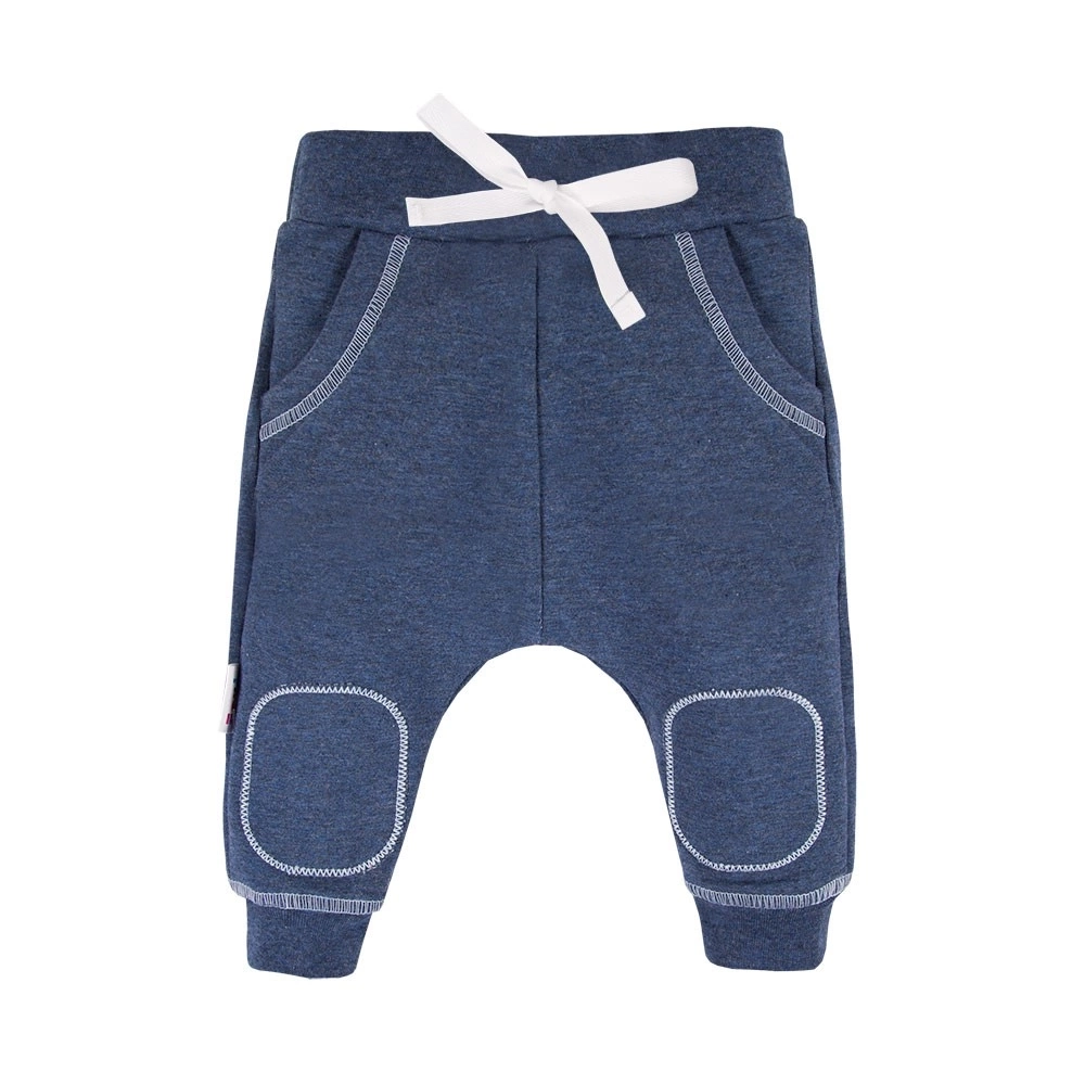 Spodnie uszyte z miękkiej i przyjemnej w dotyku dzianiny bawełnianej.